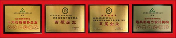 中国最具商业价值设计50强(别墅类,北京唯一);北京装饰装修行业十大诚信品牌企业;北京装饰装修行业最具影响力品牌企、
